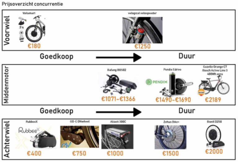 Uit het prijsoverzicht kan opgemaakt worden dat er enkele relatief goedkope producten beschikbaar zijn die een normale fiets naar elektrische fiets kunnen ombouwen. De meeste producten zijn echter een stuk prijziger, er zijn maar weinig ‘goedkope’ methodes